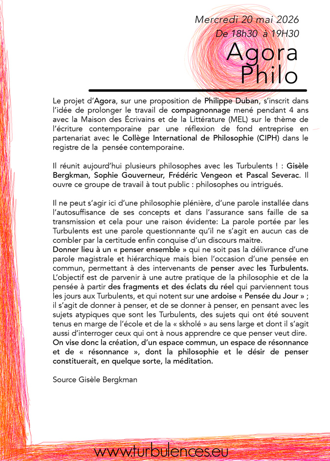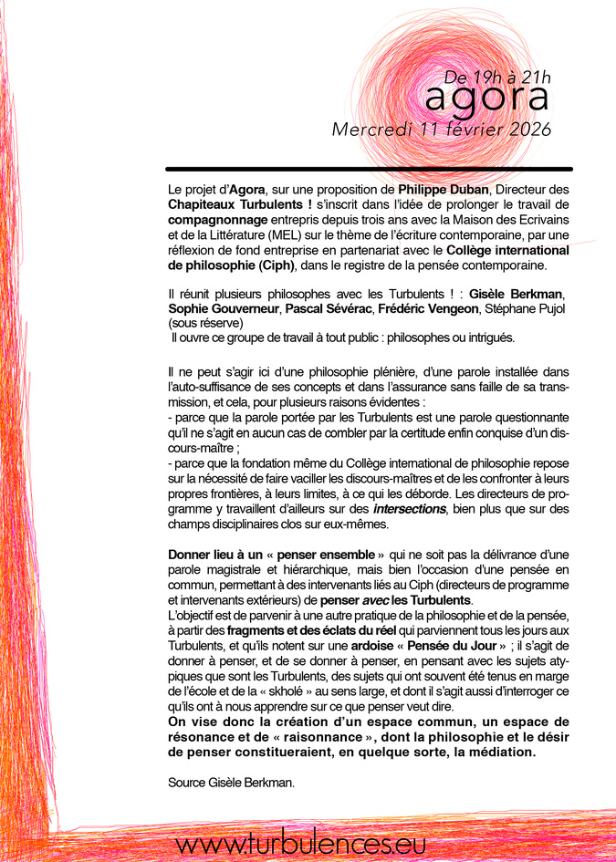Agora Philosophique aux Chapiteaux Turbulents ! le 11 février de 19h à 21h