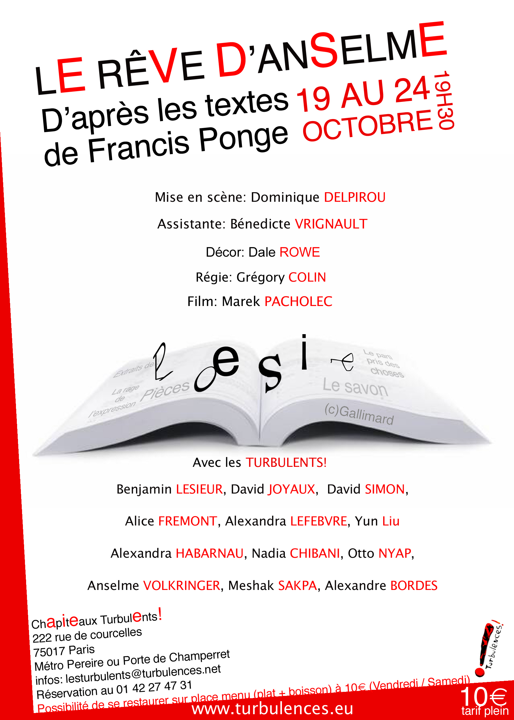 Mis en scène par DOMINIQUE DELPIROU avec Les Turbulents !