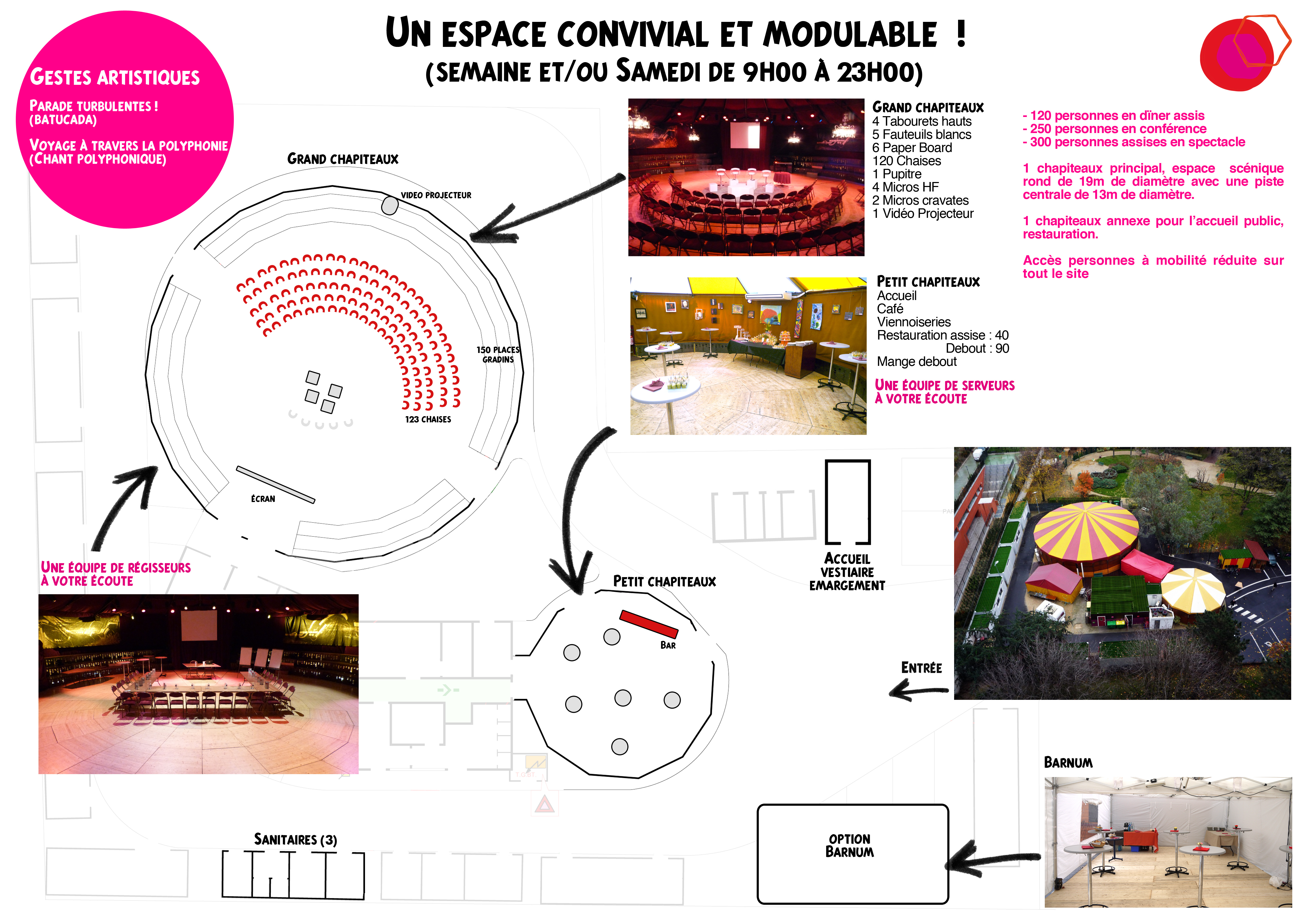 Toutes nos manifestations sont organisées par notre équipe de régisseurs et peuvent être animées par nos équipes artistiques. Accès Personnes à mobilité réduite sur tout le site.